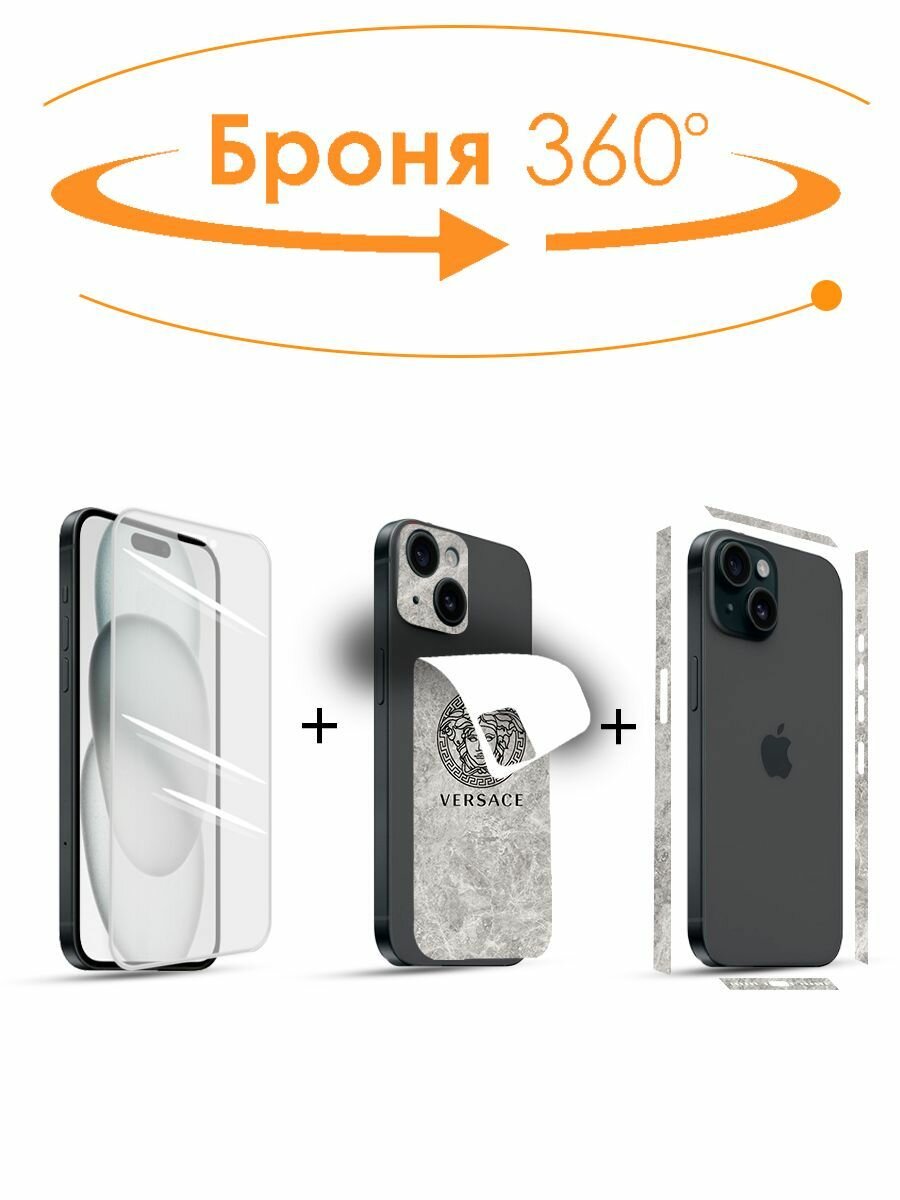 Комплект 2 шт. Защитная пленка 360 градусов для iPhone 15, виниловая пленка, пленка на айфон