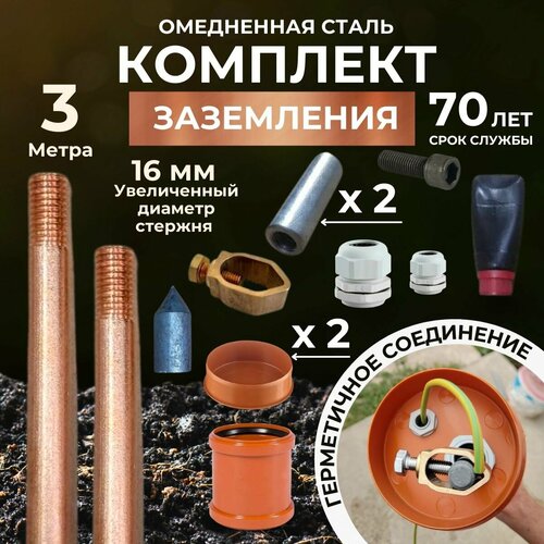 Купить Комплект заземления для дома 3 м из омедненной стали диаметром 16мм с доставкой по всей России. Комплект заземления для дома 3 м из омедненной стали диаметром 16мм: сравнение цен, характеристики, фото, актуальное наличие и цены.