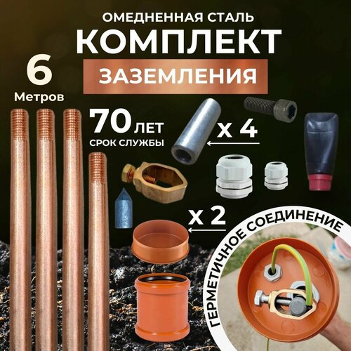Купить Комплект заземления для дома 6 м из омедненной стали диаметром 14мм с доставкой по всей России. Комплект заземления для дома 6 м из омедненной стали диаметром 14мм: сравнение цен, характеристики, фото, актуальное наличие и цены.