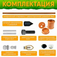 Комплект заземления из омедненной стали предназначен для организации эффективного, долговечного и удобного в монтаже заземления в условиях повышенной коррозионной опасности (агрессивный грунт, повышенная влажность и т. п.). Комплект заземления состоит из стержней длиной 1,5 метра, выполненных из омедненной стали, соединительных муфт из нержавеющей стали и герметичного бокса для соединения стержней и заземляющего кабеля. Преимущества заземления из омедненной стали: высокая устойчивость омедненной стали к коррозии даже в самых агрессивных средах позволяет гарантировать срок службы такого заземляющего устройства до 80 лет. минимальная площадь, занимаемая заземлением позволяет его монтировать в подвалах зданий, либо в близости от стен дома в виде всего одной точки. Компактность сводит к минимуму необходимые земляные работы. легкость монтажа, без применения специализированной техники и инструментов. Все операции может осуществить 1 человек. Большая глубина позволяет получать очень эффективное заземление. Не требует сварки элементов! герметичный бокс для соединения крайнего стержня и заземляющего кабеля, устраняет главный недостаток аналогичных систем, а именно коррозию соединения. Спасибо за то что выбрали наш комплект заземления.