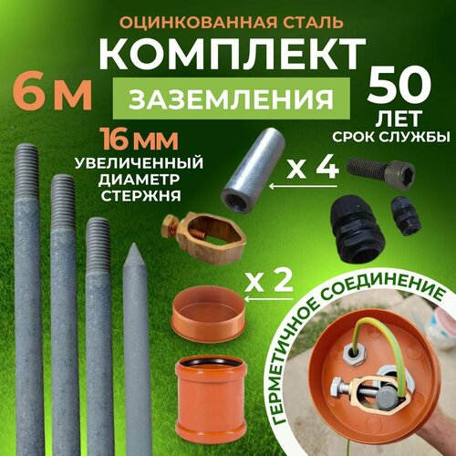 Комплект заземления из оцинкованной стали диаметром стержня 16 мм хорошо подойдет для любых домов, хозяйственных помещений и промышленных нужд. Содержит все необходимое для заземления вашего строения. Преимущества данного комплекта:
