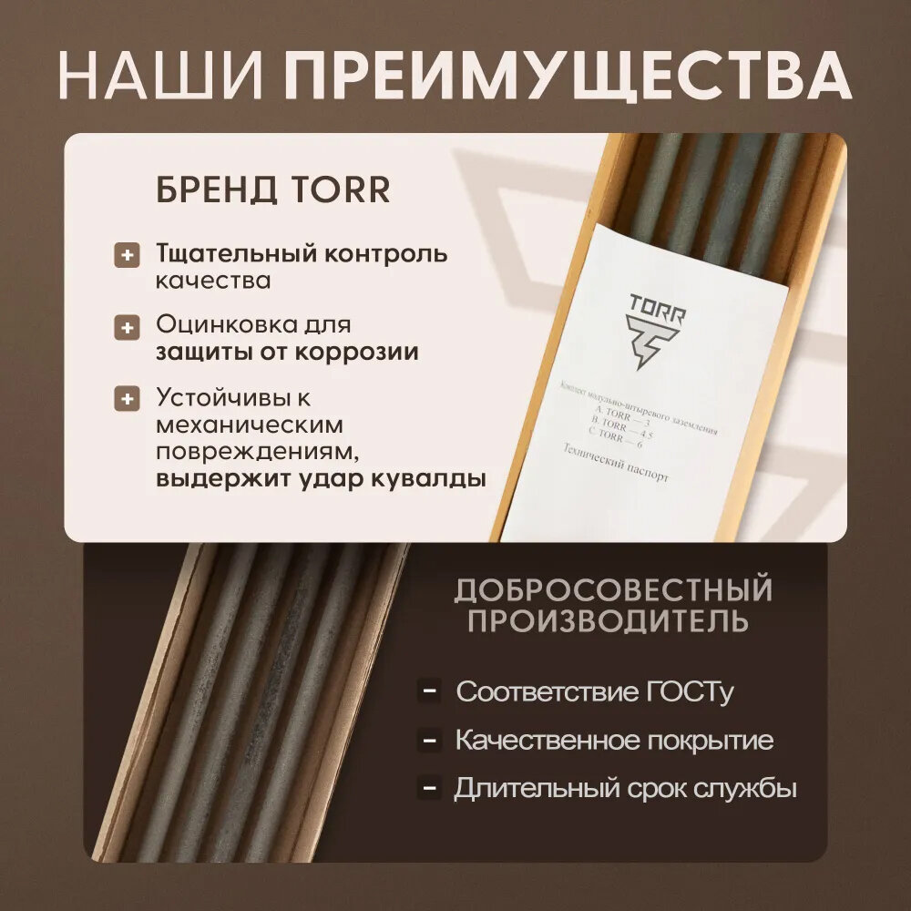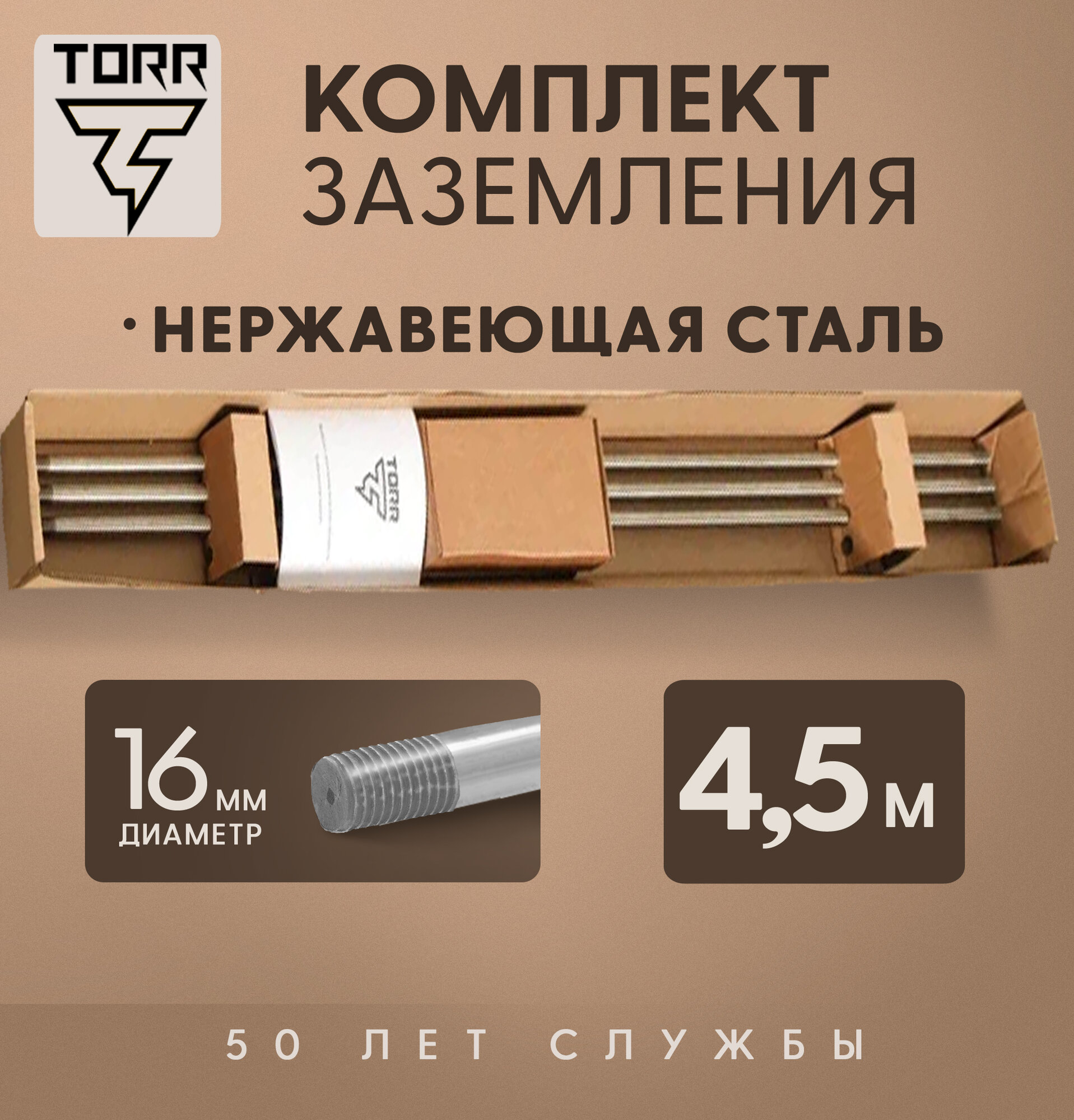 Купить Комплект заземления из нержавеющей стали, длина 4.5 м, диаметр 16 мм, TORR с доставкой по всей России.