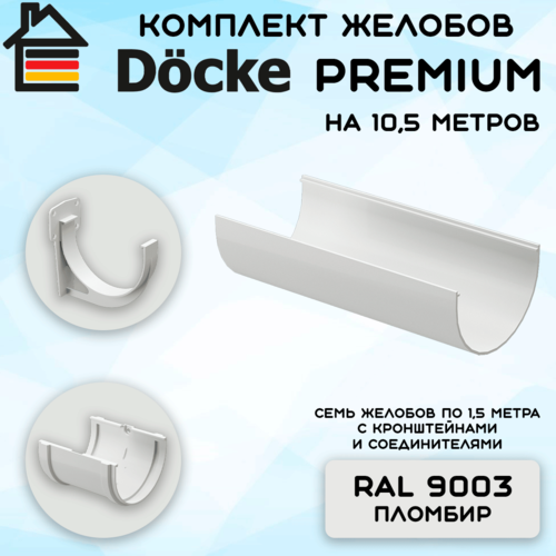 Купить Комплект желобов водостока на 10,5 метров Docke Premium цвета пломбир (120мм/85мм) RAL 9003 с доставкой по всей России. Комплект желобов водостока на 10,5 метров Docke Premium цвета пломбир (120мм/85мм) RAL 9003: сравнение цен, характеристики, фото, актуальное наличие и цены.