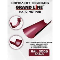 Комплект желобов водостока на 10 метров Grand Line бордового цвета (120мм/90мм) RAL 3005: сравнение цен, характеристики, фото, актуальное наличие и цены.