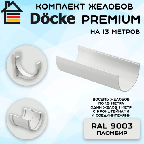 Купить Комплект желобов водостока на 13 метров Docke Premium цвета пломбир (120мм/85мм) RAL 9003 с доставкой по всей России. Комплект желобов водостока на 13 метров Docke Premium цвета пломбир (120мм/85мм) RAL 9003: сравнение цен, характеристики, фото, актуальное наличие и цены.