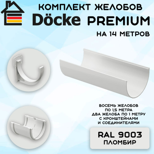 Купить Комплект желобов водостока на 14 метров Docke Premium цвета пломбир (120мм/85мм) RAL 9003 с доставкой по всей России. Комплект желобов водостока на 14 метров Docke Premium цвета пломбир (120мм/85мм) RAL 9003: сравнение цен, характеристики, фото, актуальное наличие и цены.