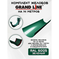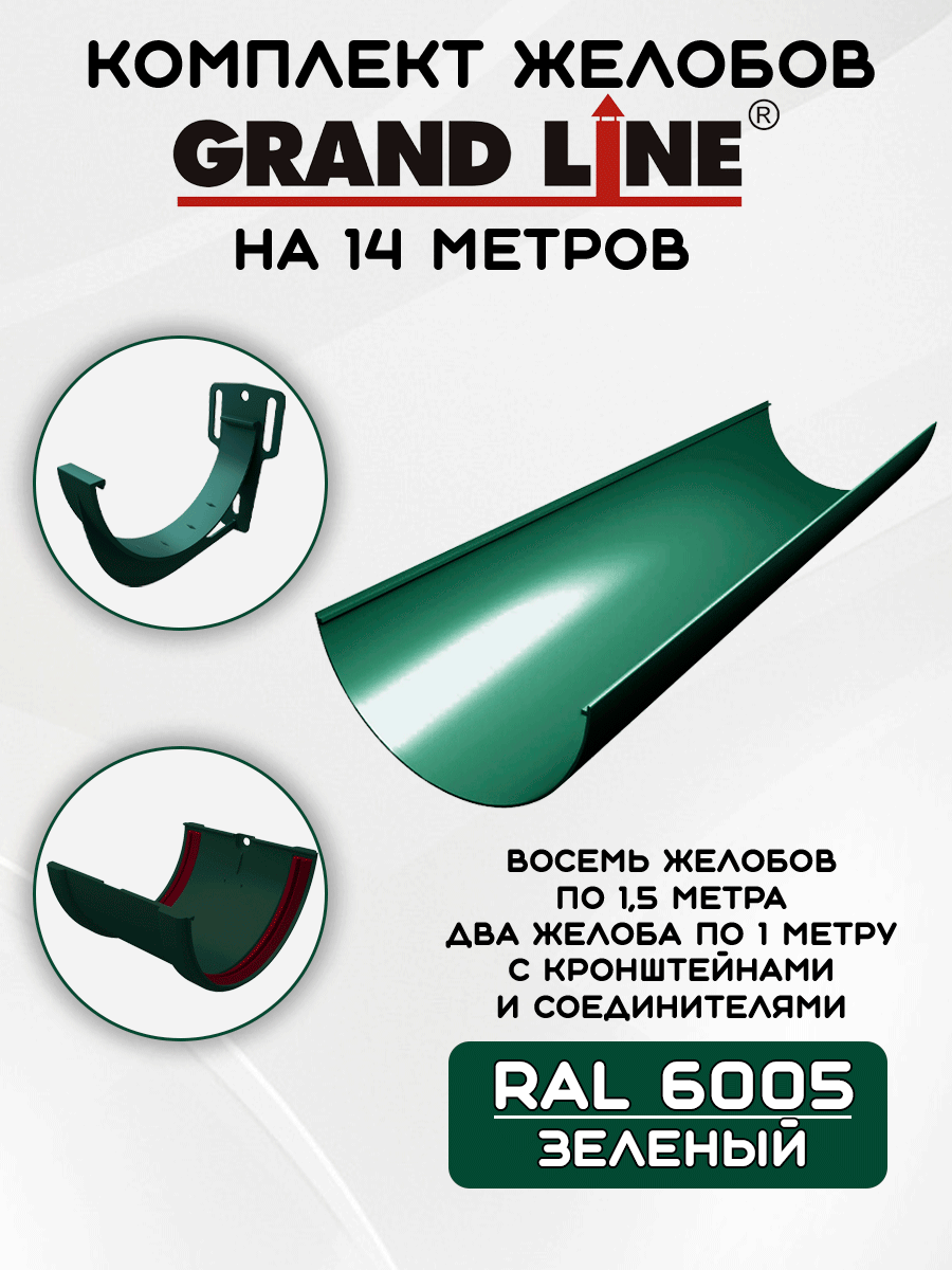 Комплект желобов водостока на 14 метров Grand Line зеленого цвета (120мм/90мм) RAL 6005: сравнение цен, характеристики, фото, актуальное наличие и цены.