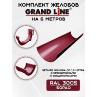 Комплект желобов водостока на 6 метров Grand Line бордового цвета (120мм/90мм) RAL 3005: сравнение цен, характеристики, фото, актуальное наличие и цены.