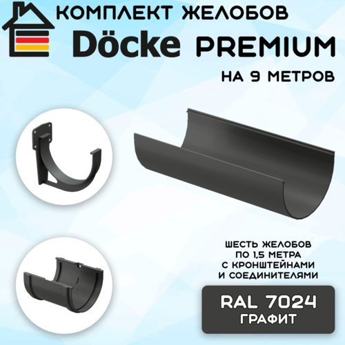 Купить Комплект желобов водостока на 9 метров Docke Premium цвета графит (120мм/85мм) RAL 7024 с доставкой по всей России. Комплект желобов водостока на 9 метров Docke Premium цвета графит (120мм/85мм) RAL 7024: сравнение цен, характеристики, фото, актуальное наличие и цены.