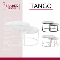 Купить Комплект журнальных кофейных приставных столиков Tango 2 шт МДФ белый мрамор с белыми ножками металл с доставкой по всей России.