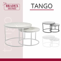Купить Комплект журнальных кофейных приставных столиков Tango 2 шт МДФ бежевый мрамор матовый с белыми ножками металл с доставкой по всей России.