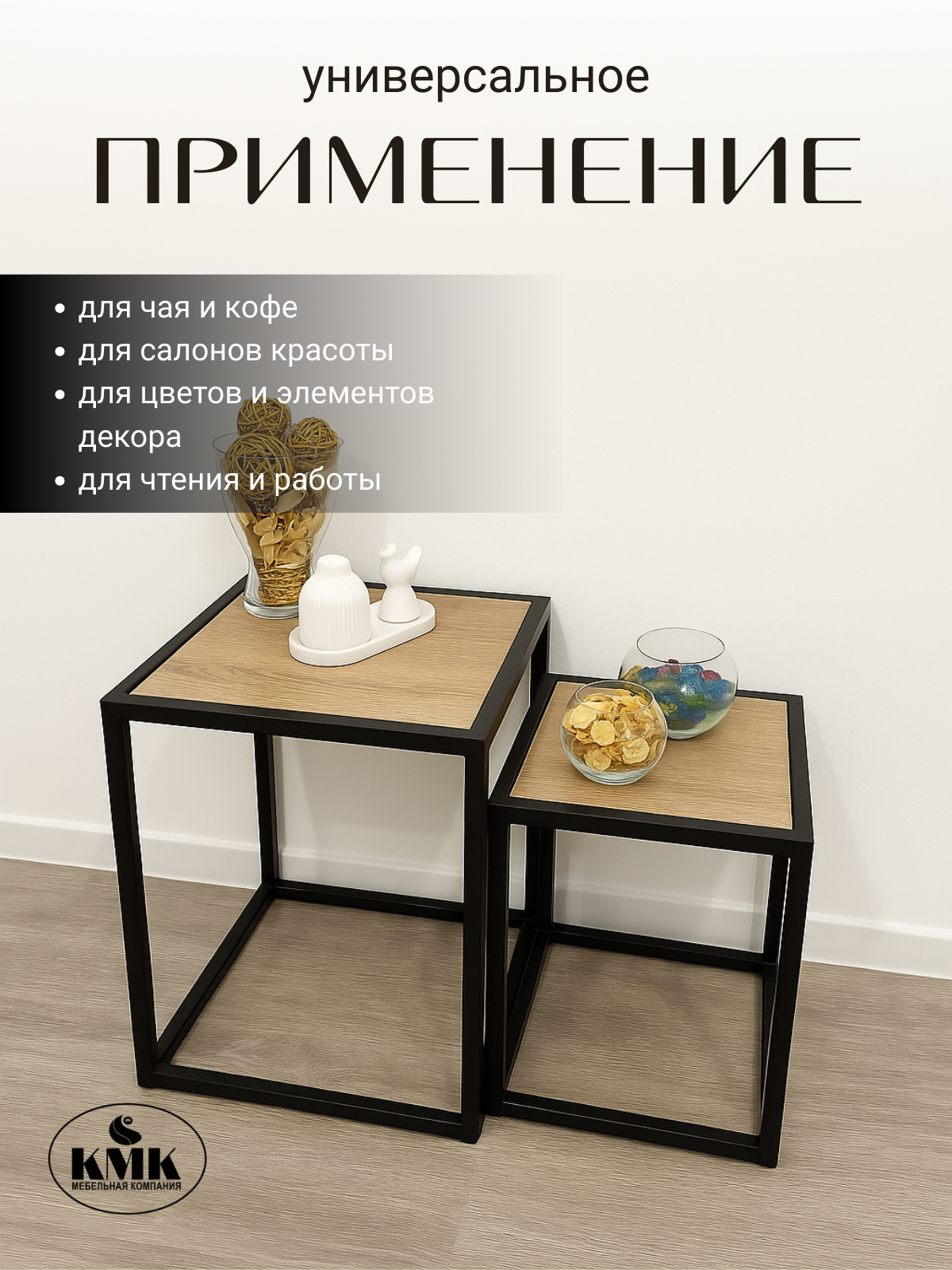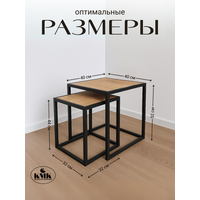 Комплект журнальных столиков 2 в 1 на металлическом основании в стиле Loft. Размеры: 40х40х52см и 32х32х44см. Идеальное решение для создания стильного и уютного интерьера в вашем доме. Столики выполнены в двух размерах, их можно использовать вместе и раздельно друг от друга. Небольшой вес и габариты позволяют с легкостью переносить их в разные комнаты. Вы можете использовать их, как маленький обеденный стол, приставной, сервировочный столик в столовой, стол для ноутбука и телефона смартфона. Металл покрыт порошковым способом окрашивания, что дает поверхности высокую износостойкость. Приставные столики станут солидным дополнением зоны ожидания в салоне красоты, стоматологии или кабинете предпринимателя. Журнальные столики придут к Вам в сборе – достал из коробки и наслаждаешься своим приобретением!