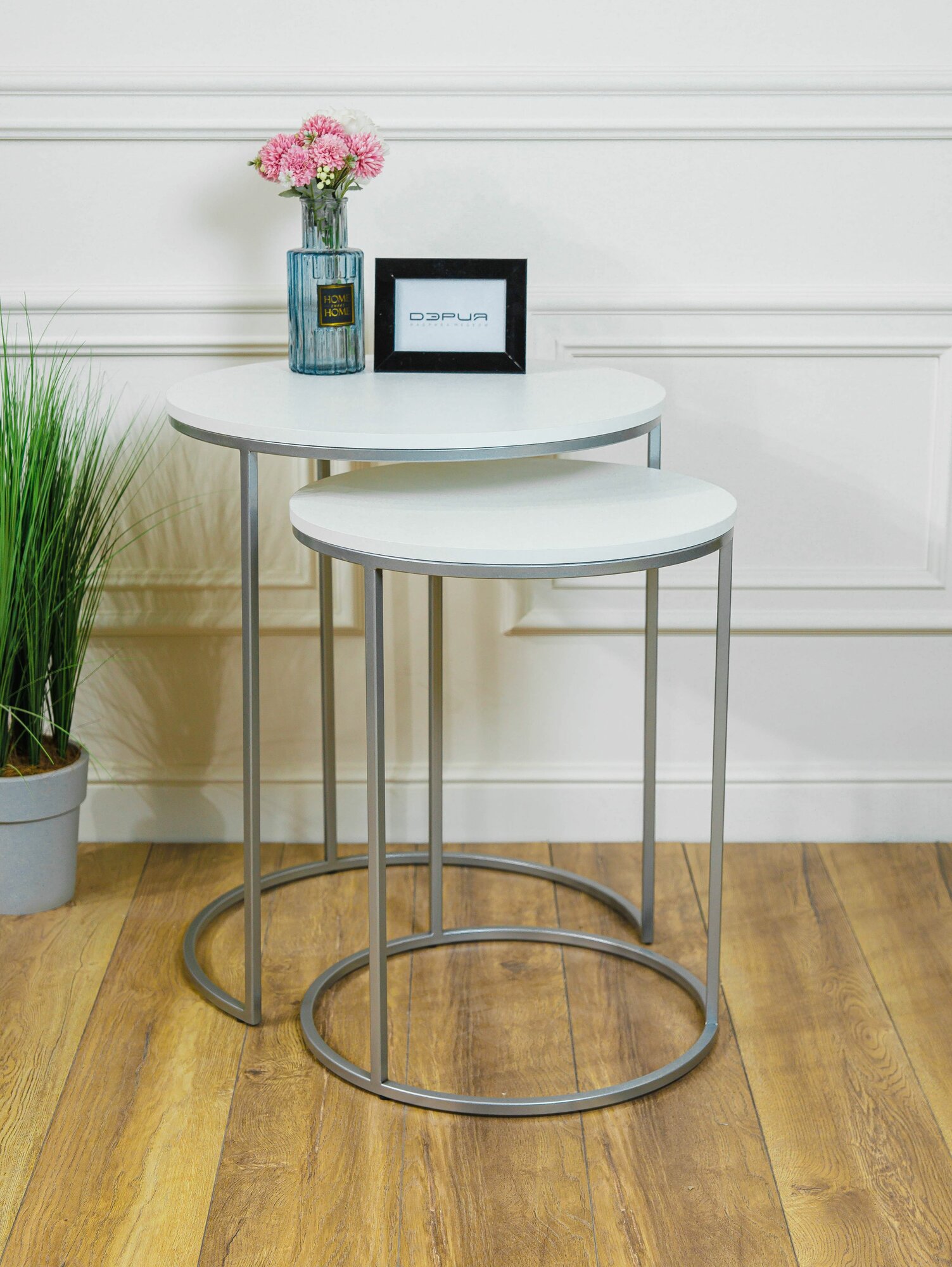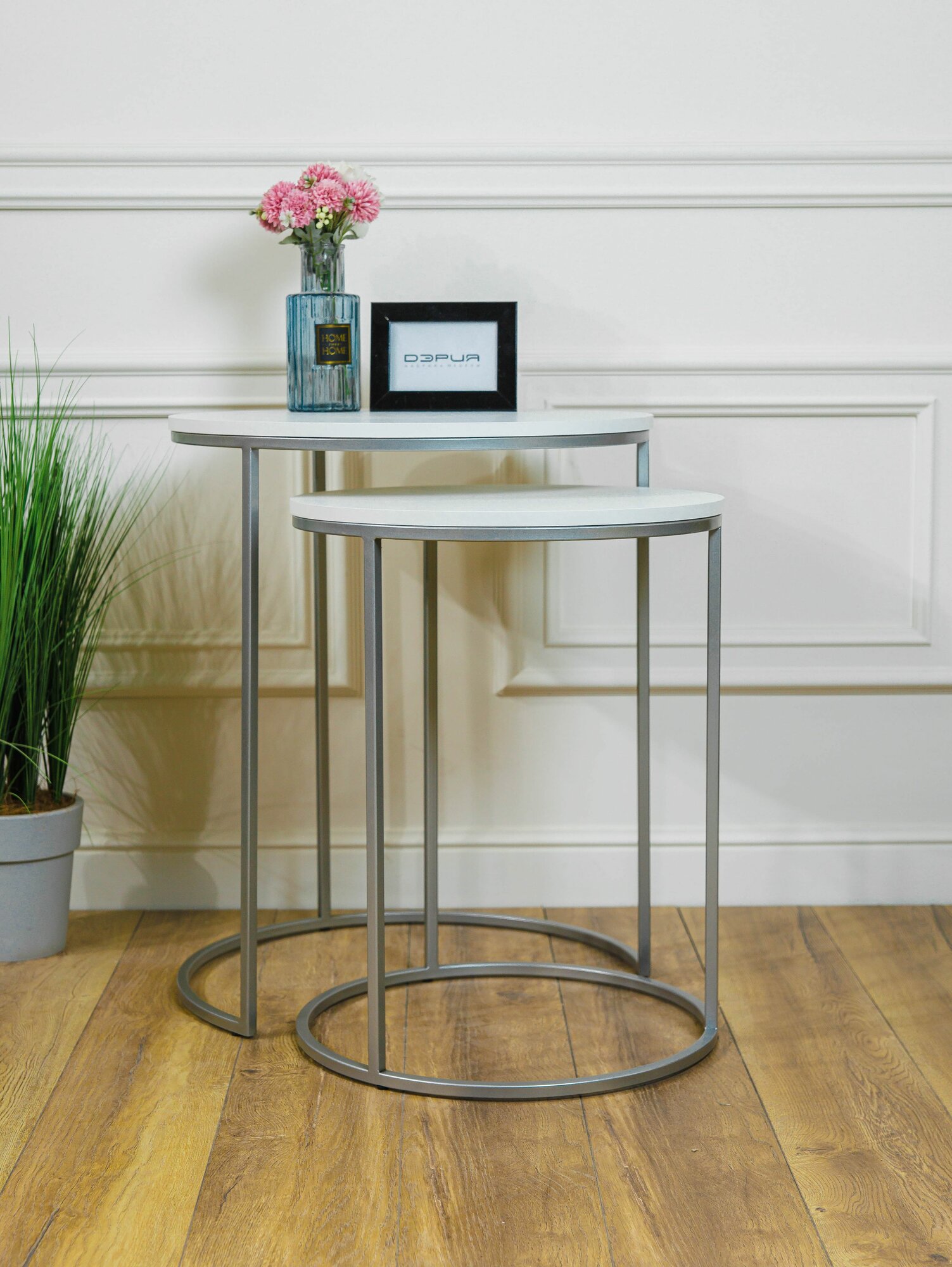 Купить Комплект журнальных столов 2в1, ЛДСП, металл, лофт, белый, серебристый с доставкой по всей России. Комплект журнальных столов 2в1, ЛДСП, металл, лофт, белый, серебристый: сравнение цен, характеристики, фото, актуальное наличие и цены.