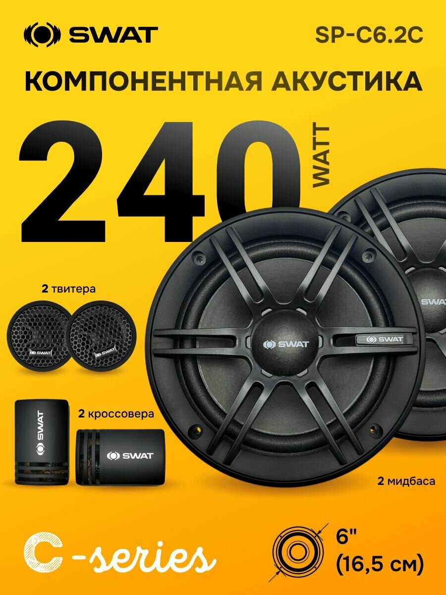 Купить Компонентная акустика 16.5 SWAT SP-C6.2 с доставкой по всей России. Компонентная акустика 16.5 SWAT SP-C6.2: сравнение цен, характеристики, фото, актуальное наличие и цены.