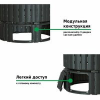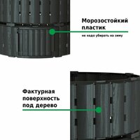 Преимуществаизготовлен из качественного пластика; долго не выцветает и не гниет; не надо убирать на зиму; обеспечивает необходимый микроклимат для созревания компоста; компактная упаковка; простая сборка без инструментов.