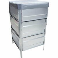 Благодаря оригинальной конструкции, имеется доступ к любому уровню компостера, с любой стороны. В комплекте крышка из прочного материала ПВХ, с центральным водосливным отверстием. В комплект компостера входит весь необходимый для усиления прочности крепёж. Ёмкости 1500 литров, вполне достаточно для сбора травы и органических отходов среднего и большого участка. Антикоррозийное покрытие надолго сохранит от коррозии. Аналогов нет. Всё для сборки в комплекте.