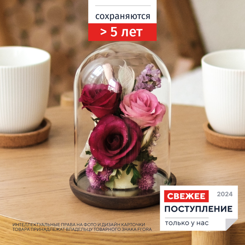 Композиция из живых цветов в герметичной вазе 15.8 см, сохраняется от 5 лет, серия Premium Dome