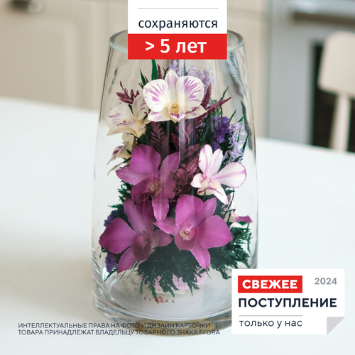 Купить Композиция из живых цветов в герметичной вазе 25.7 см, сохраняется от 5 лет, серия Oriety 5311 с доставкой по всей России.