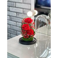 Композиция в стекле мини "Вне времени" - это уникальный подарок для ваших близких и родных. Наша композиция из красных стабилизированных роз и растений со мхом будет радовать их своей красотой и свежестью на протяжении 5 лет.
