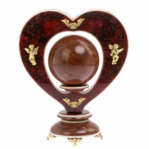 Композиция "Сердце" с шаром камень лемезит размером 21х10х26 см и весом 3800 г.