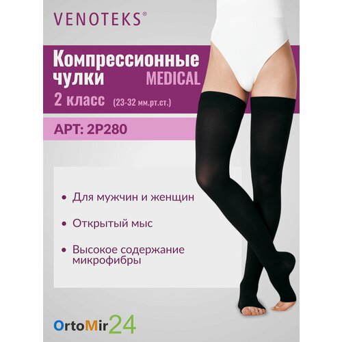 Чулки 2P280 VENOTEKS MEDICAL с открытым носком 2 класс, Черный, Стандартная, размер 2: сравнение цен, характеристики, фото, актуальное наличие и цены.