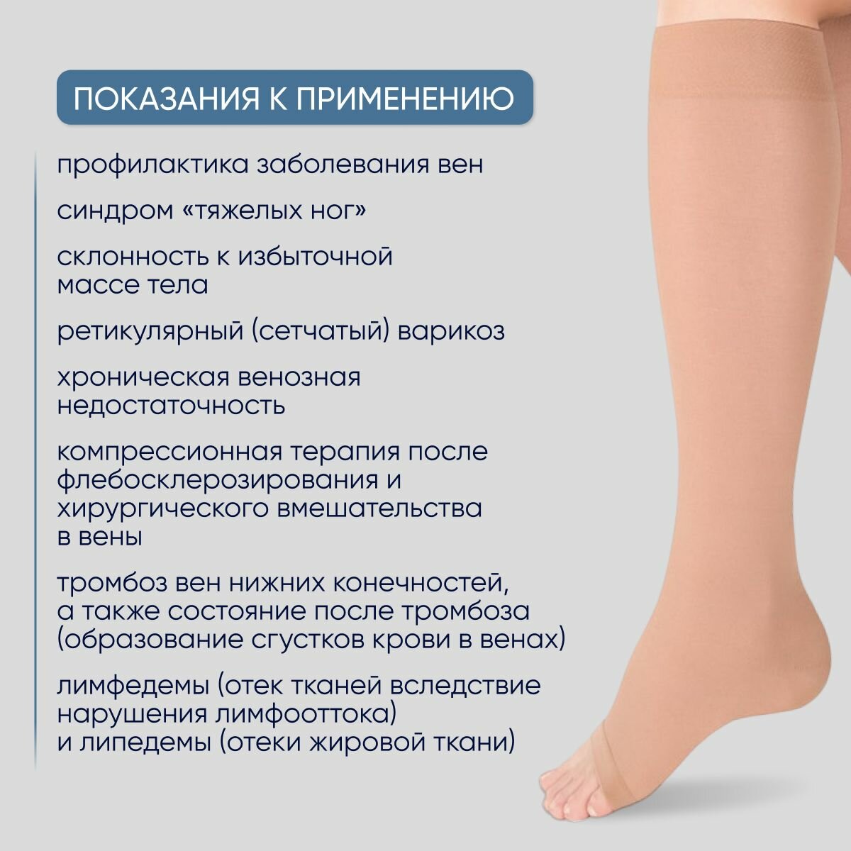- индивидуальная непереносимость ткани компрессионных изделий