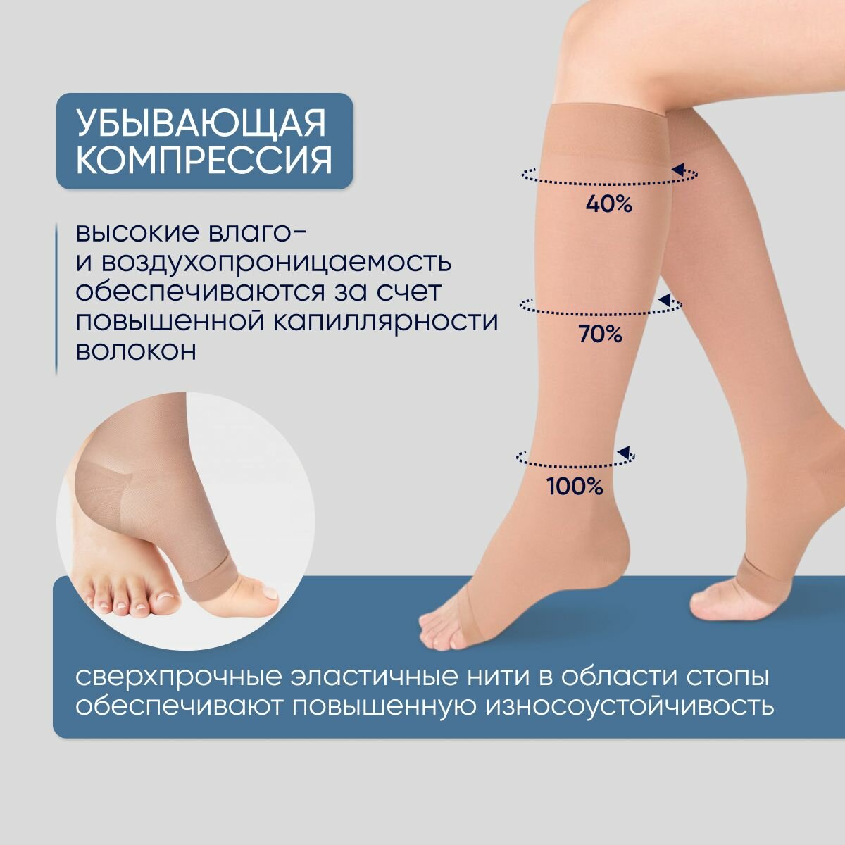 - анатомическая форма гольфа обеспечивает идеальное прилегание к ноге и комфорт