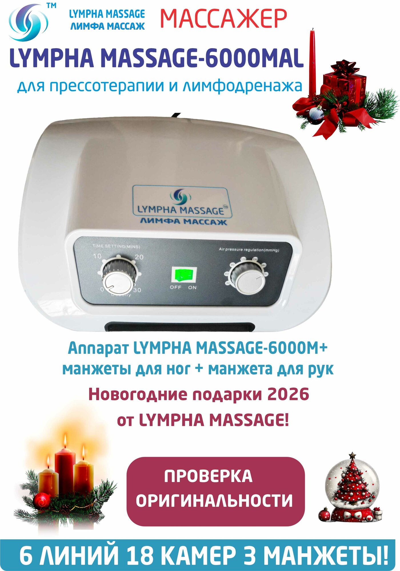 Купить Компрессионный массажер для ног и рук Lympha Massage-6000MAL комплект — 18 массажных камер +3 манжеты+подарки с доставкой по всей России. Компрессионный массажер для ног и рук Lympha Massage-6000MAL комплект — 18 массажных камер +3 манжеты+подарки: сравнение цен, характеристики, фото, актуальное наличие и цены.