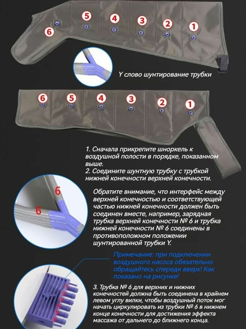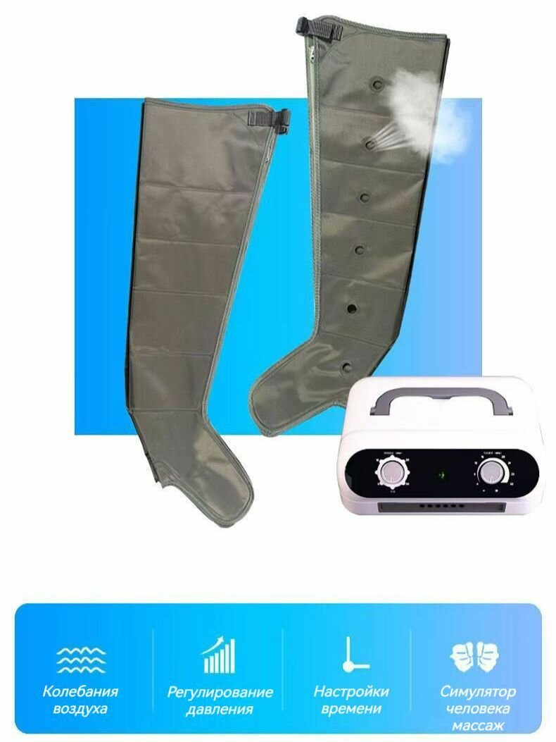 Компрессионный массажер для ног с инструментом для лимфодренажа и прессотерапии Основная Аппарат (компрессор) 1 шт Манжета для ног (6) со шлангом 2 шт