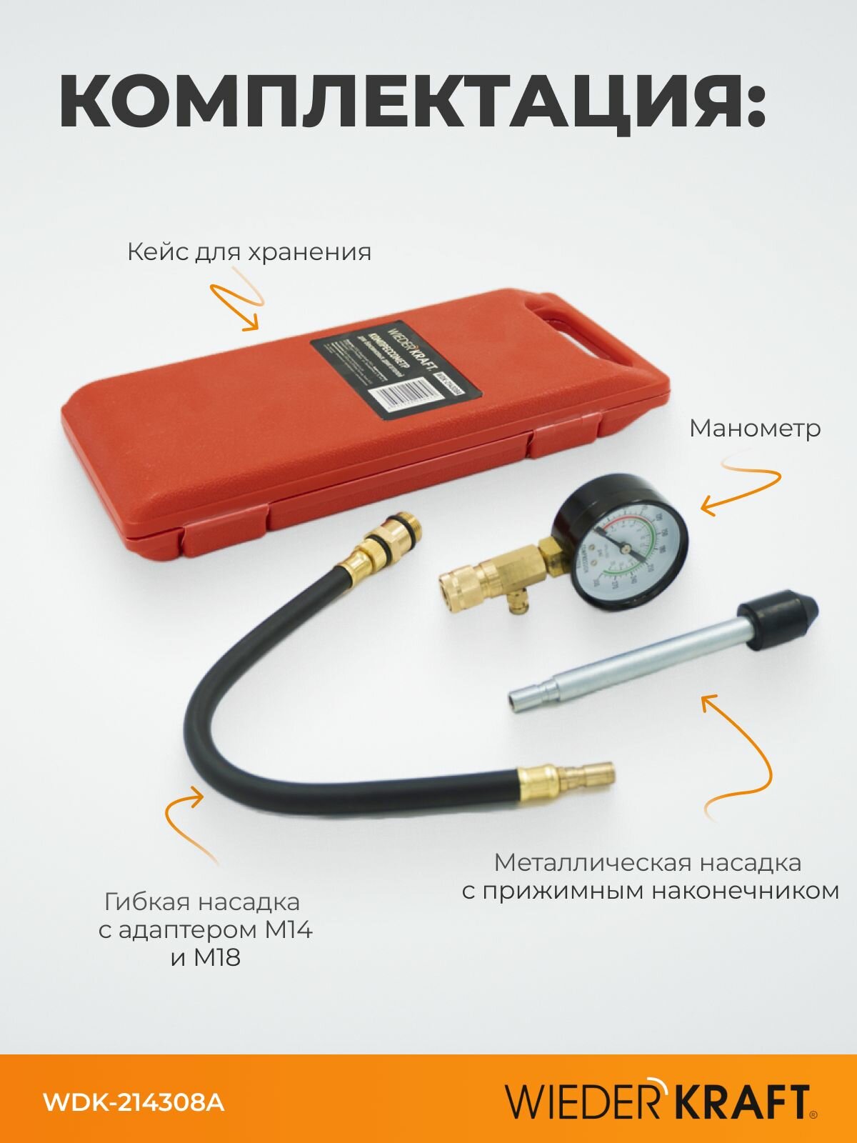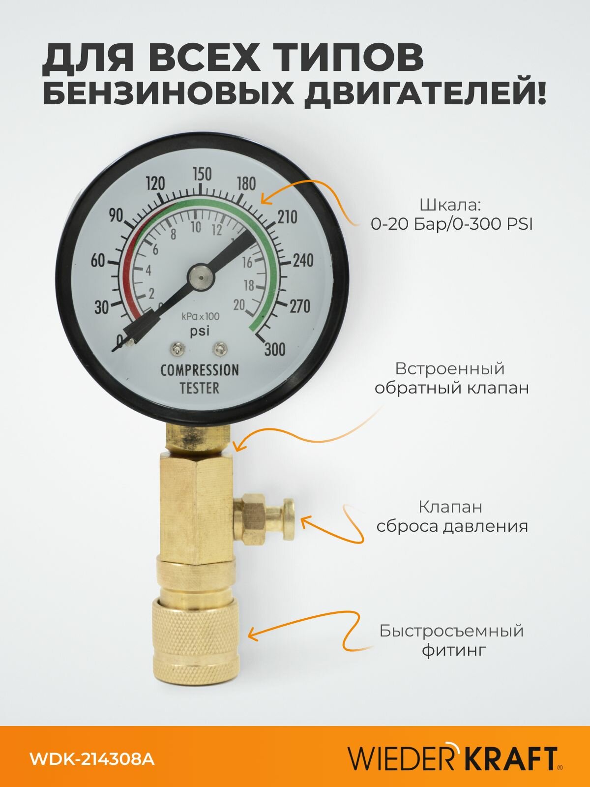 Компрессометр WIEDERKRAFT WDK-214308A, для бензиновых двигателей