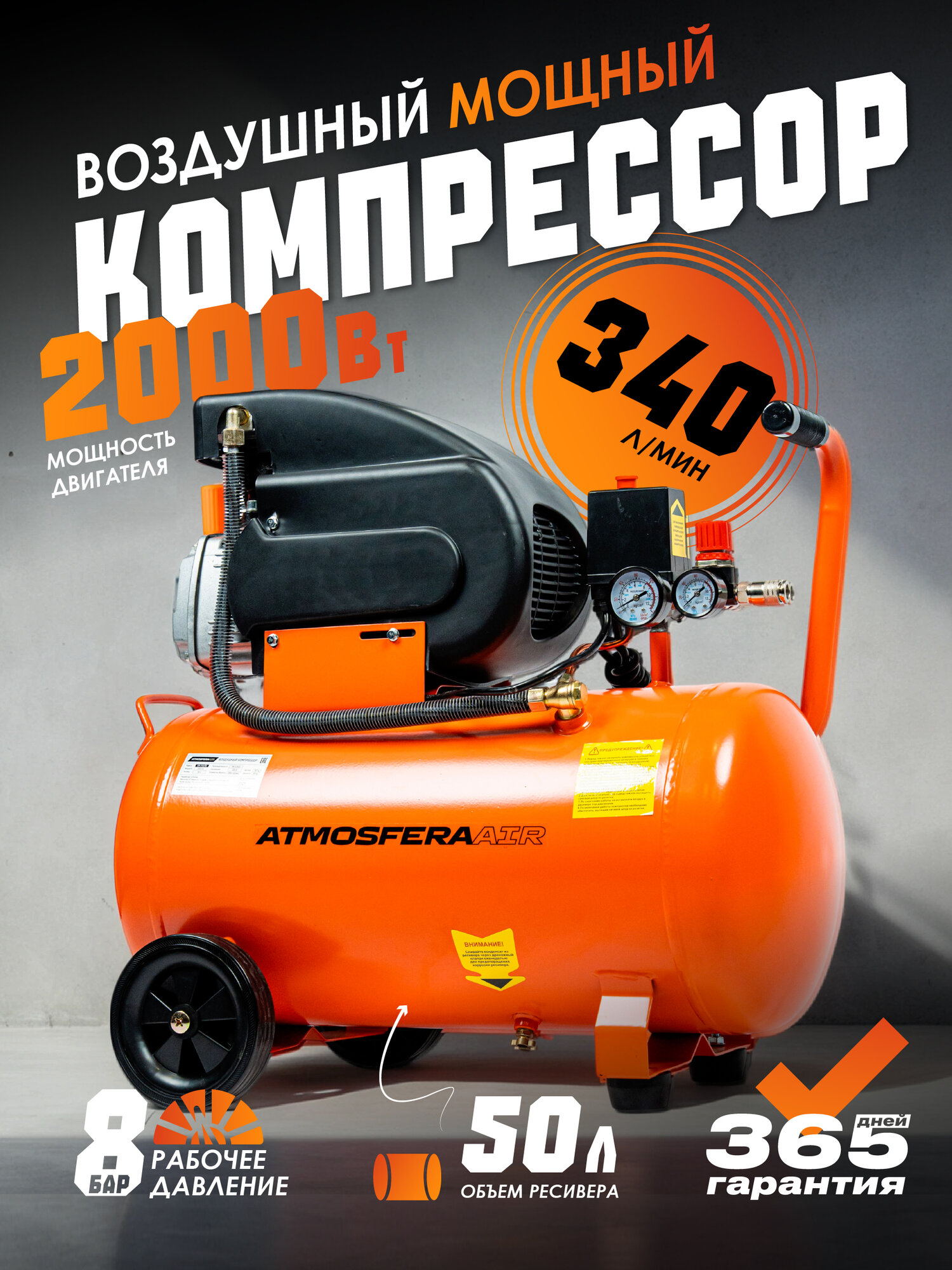 Компрессор ATMOSFERAAIR КМ-340/50, пневматический, 340л/мин, 50 литров, 2000Вт диаметр поршня 47мм: сравнение цен, характеристики, фото, актуальное наличие и цены.