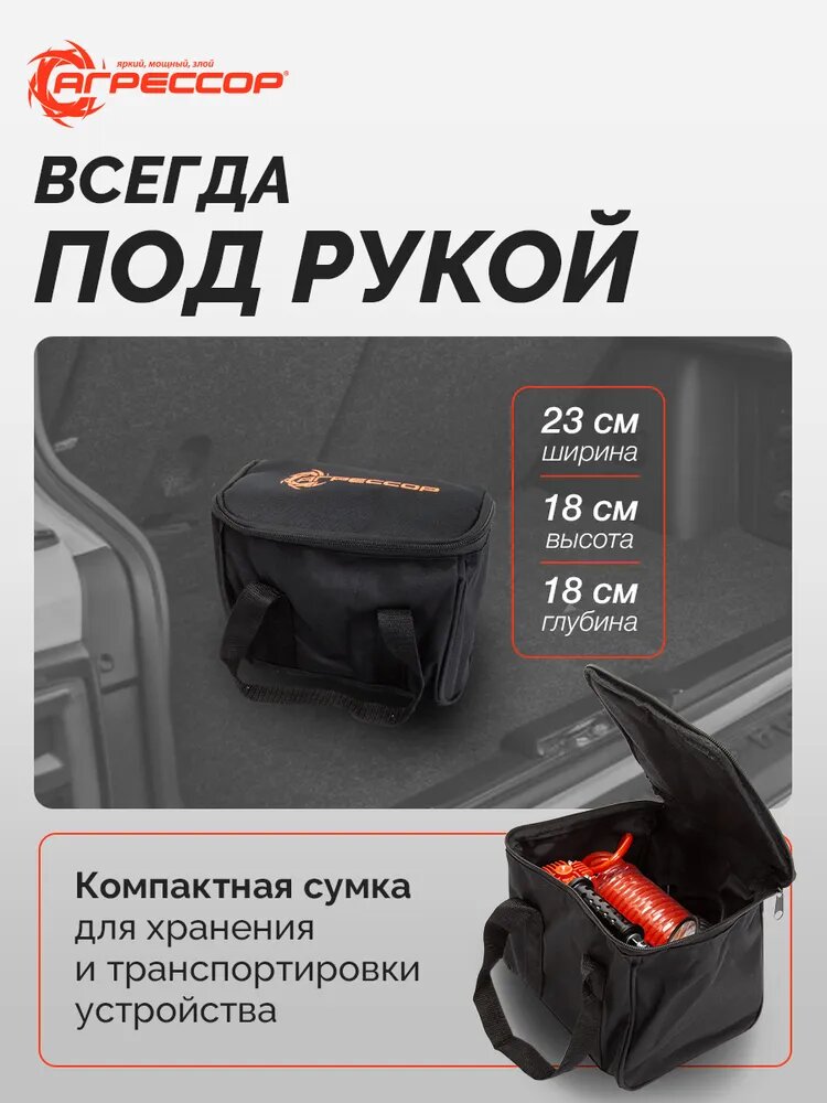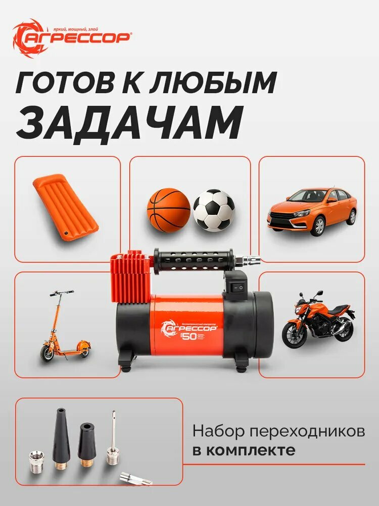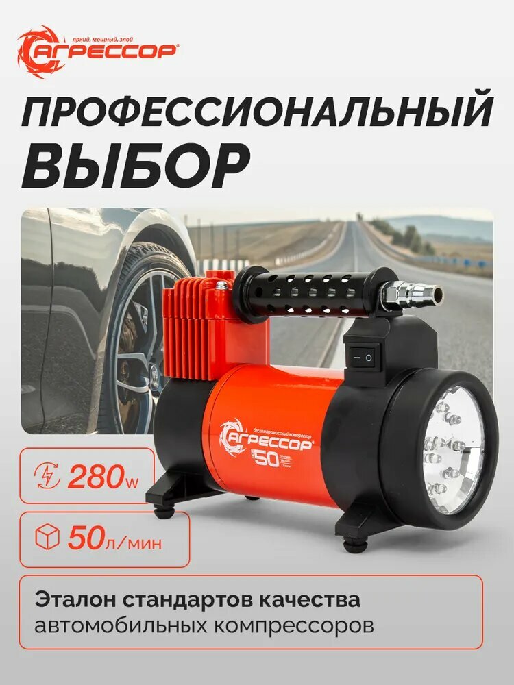 Компрессор автомобильный 12В от клемм аккумулятора АГРЕССОР (50 л мин) с манометром, фонарем и сумкой: сравнение цен, характеристики, фото, актуальное наличие и цены.