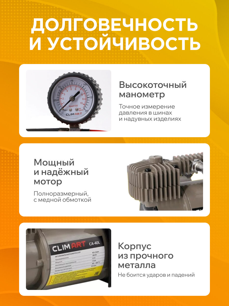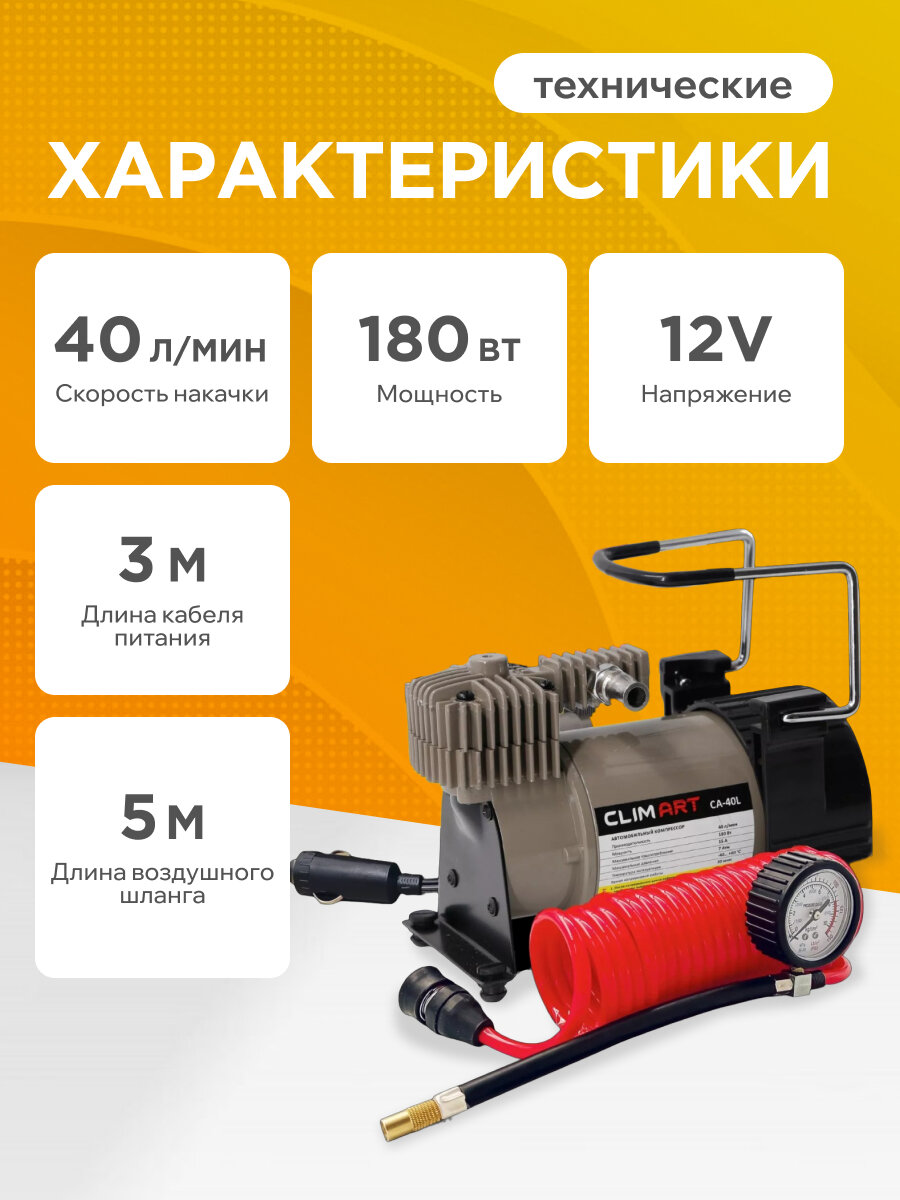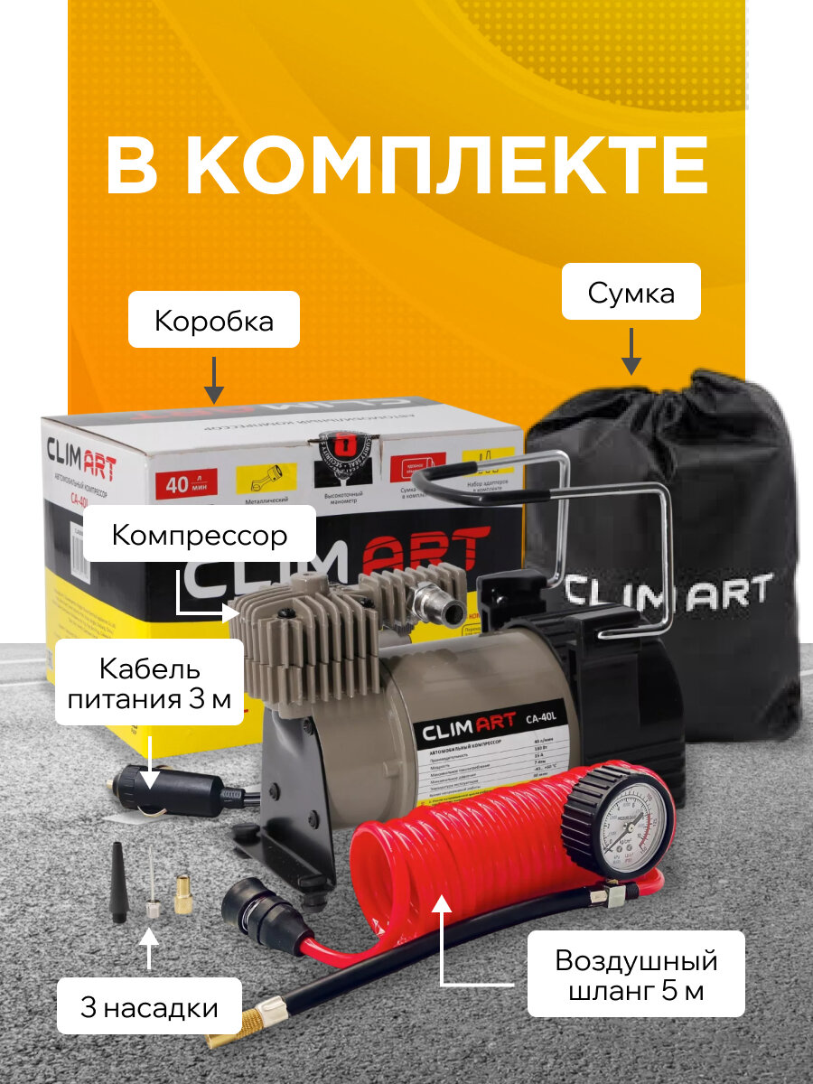 Купить Компрессор автомобильный 12В от прикуривателя и аккумулятора (40л/мин) с манометром и сумкой, CLIM ART с доставкой по всей России. Компрессор автомобильный 12В от прикуривателя и аккумулятора (40л/мин) с манометром и сумкой, CLIM ART: сравнение цен, характеристики, фото, актуальное наличие и цены.