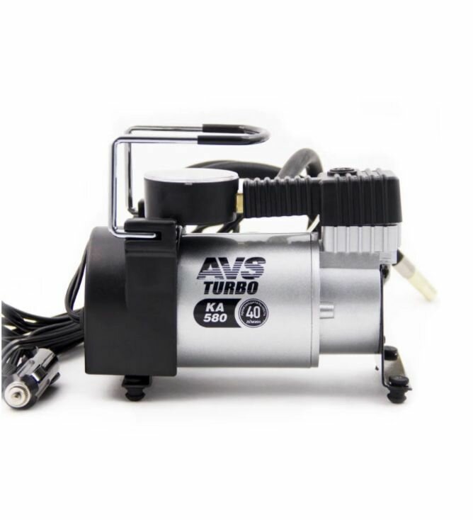 Компрессор автомобильный AVS KA580 Автомобильный компрессор AVS "KA580" предназначен для накачки воздухом шин легковых и коммерческих автомобилей. Рабочее напряжение компрессора - 12В. Высокая производительность делает возможным более широкое применение. Автомобильный компрессор может быть использован для накачки мячей, матрасов, проведения покрасочных работ. Максимальный ток потребления: 14 А Напряжение: 12 В Мощность: 150 W Максимальное давление: 10 Атм. Производительность: 40 л/мин. Рабочая температура: от -35°С до +80°С Длина кабеля: 3 м Масса: 1,9 кг