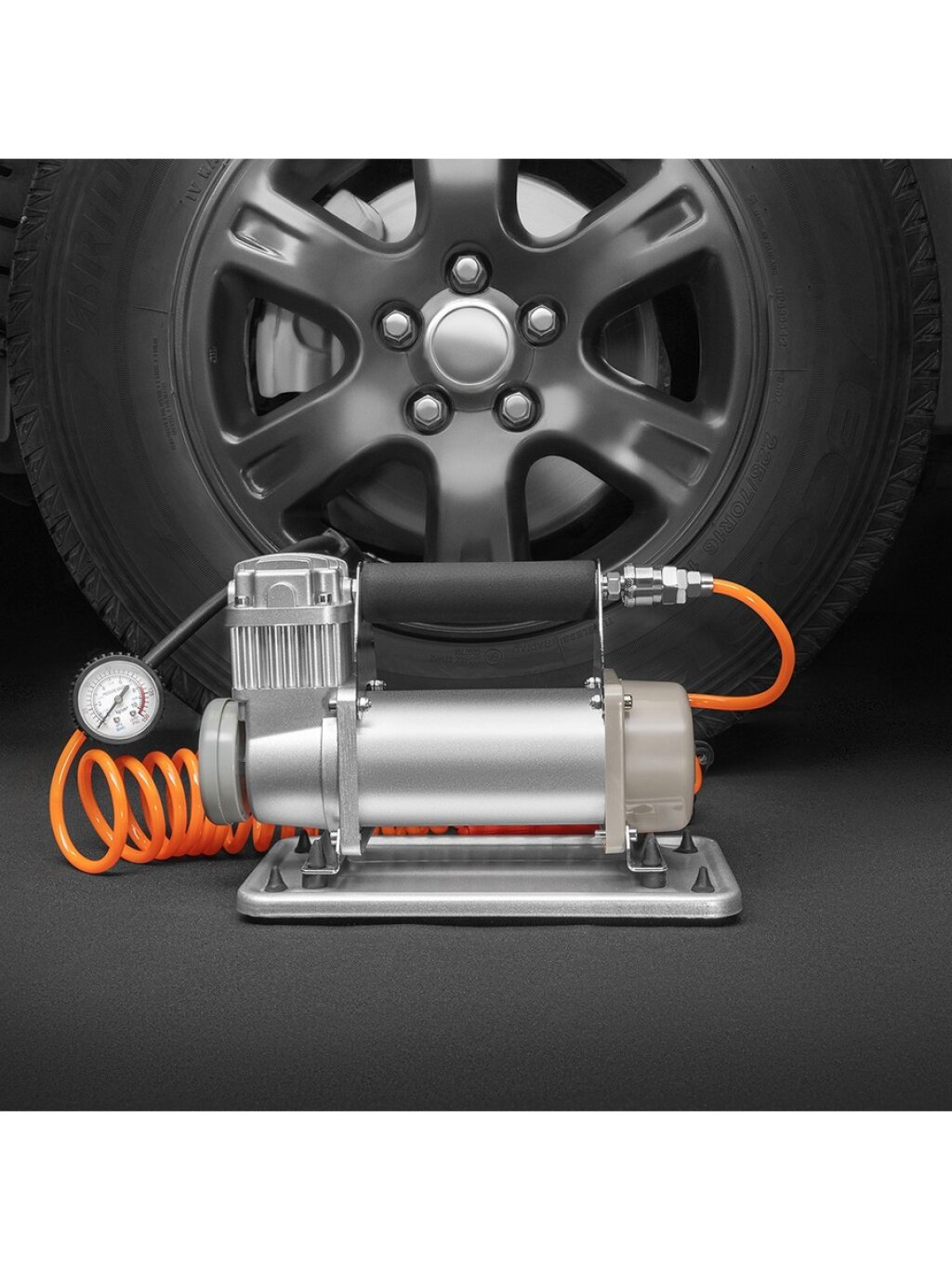 Большой, мощный, надежный, он отлично справится с колесами любого размера и радиуса, будь то внедорожнике или грузовик, не говоря уже о седане. Благодаря высокой мощности, он накачивает колесо со скоростью 72 литра в минуту и способен создавать давление в 300 PSI, что в два раза больше, чем обычные авто насосы.