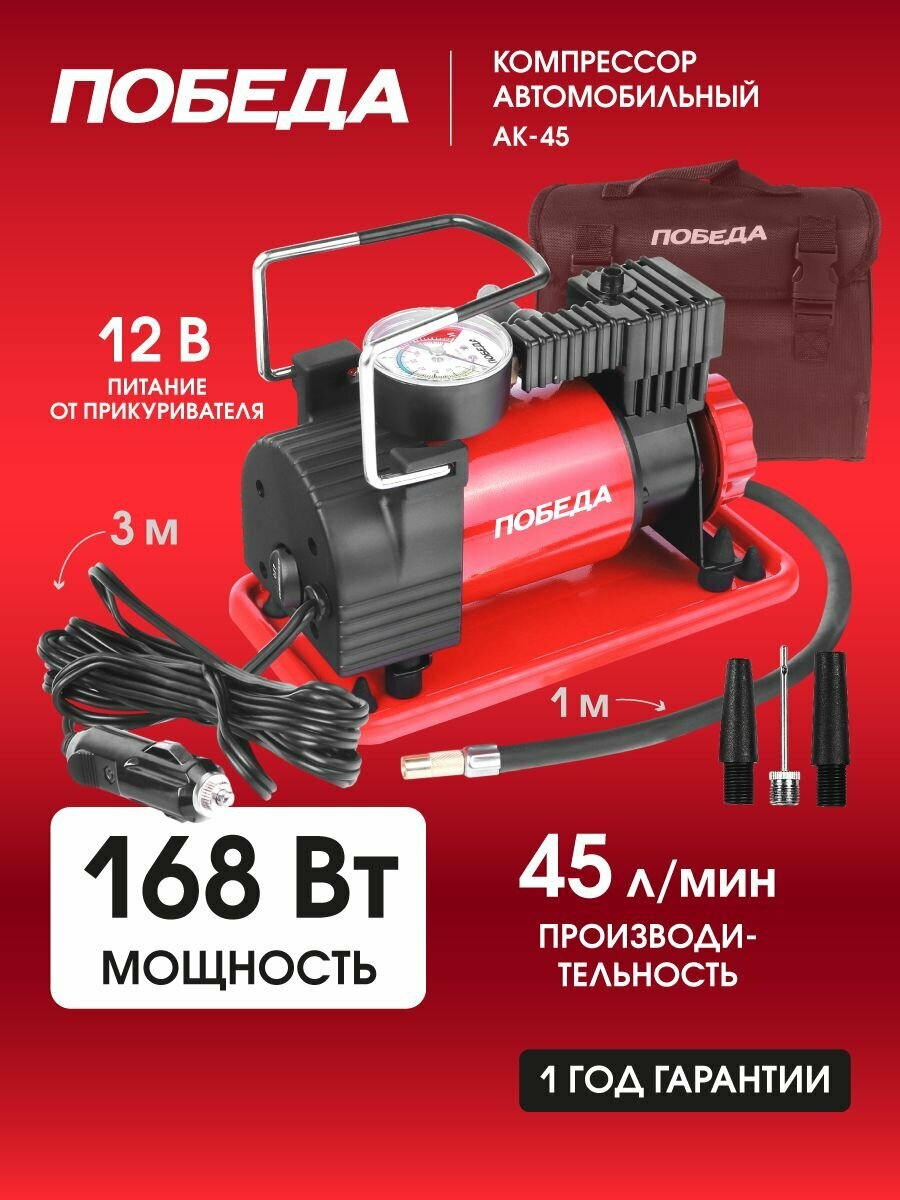 Компрессор автомобильный победа АК 45, 168Вт, 6.9атм: сравнение цен, характеристики, фото, актуальное наличие и цены.