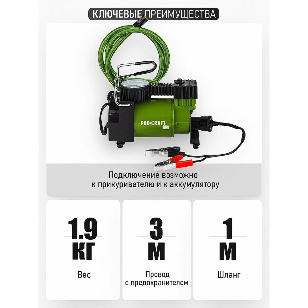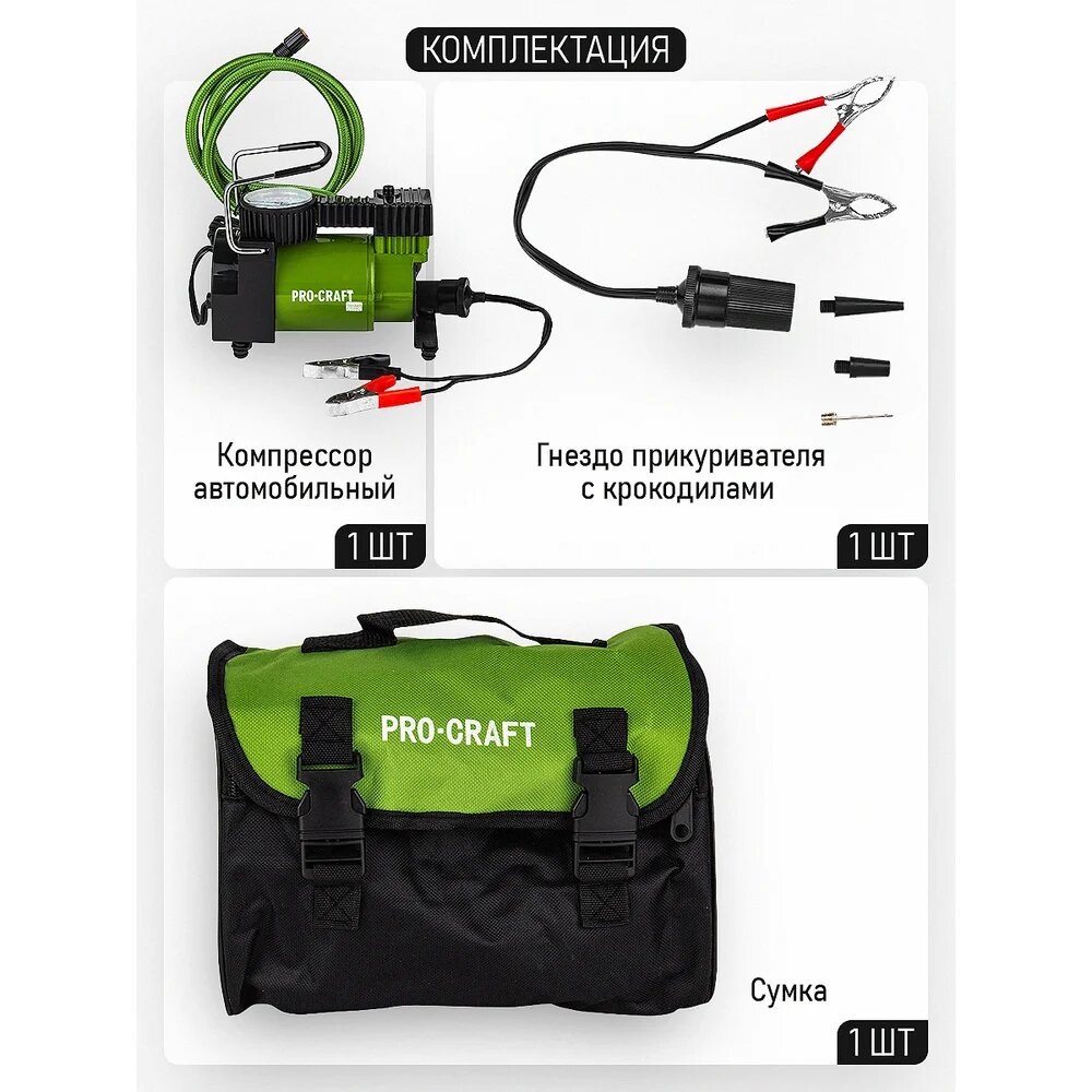Компрессор автомобильный PROCRAFT 35 л/мин, 168Вт, 14А, 7 бар, крокодилы, сумка LK190: сравнение цен, характеристики, фото, актуальное наличие и цены.