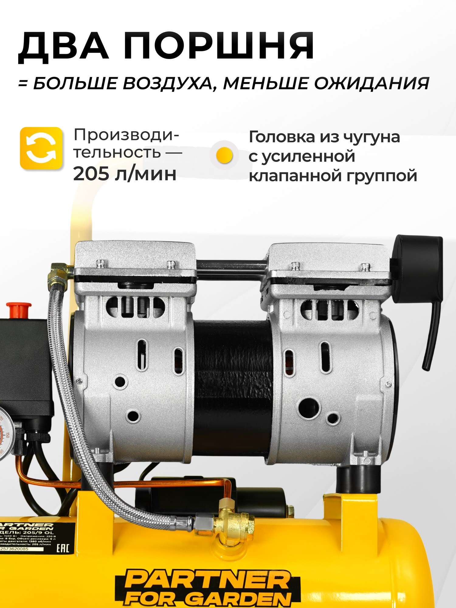 Компрессор безмасляный Partner for Garden 205/9 (1500вт, асинхронный, 205 л/мин ): сравнение цен, характеристики, фото, актуальное наличие и цены.