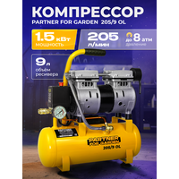 Купить Компрессор безмасляный Partner for Garden 205/9 (1500вт, асинхронный, 205 л/мин ) с доставкой по всей России.
