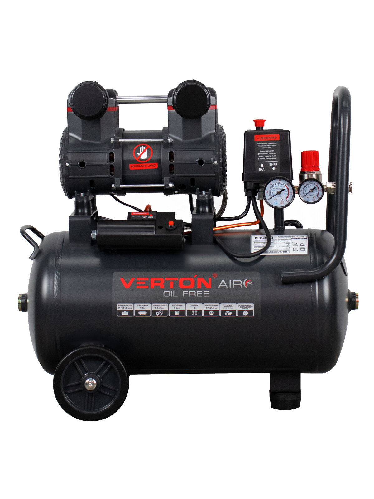 Купить Компрессор безмасляный Verton Air AC-24/260 (230/50В/Гц, б/масл.260л/мин, V24 л, макс. дав.8 бар, мощн.1,1кВт) с доставкой по всей России. Компрессор безмасляный Verton Air AC-24/260 (230/50В/Гц, б/масл.260л/мин, V24 л, макс. дав.8 бар, мощн.1,1кВт): сравнение цен, характеристики, фото, актуальное наличие и цены.