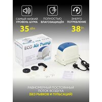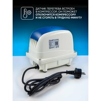 Область назначения компрессора Jecod: 1) В автономных канализациях загородных домов (дека, Евробион, Топас, Астра и многих других) 2) В дачных септиках (Танк и Биотанк, и многих других) 3) Для насыщения воздухом водные слои декоративного пруда в теплый сезон, а также самое главное для создания полыньи на поверхности пруда зимой, чтобы рыба в пруду не задыхалась и вредные нитраты испарялись. 4) Самое популярные места где применяют — это в установках замкнутого водоснабжения (УЗВ) для выращивания рыб и ракообразных, путем насыщения кислородом. также в УЗВ есть резервуары где находится биозагрузка, компрессоры Jecod там тоже используют. 5) Перевозка и торговля живой рыбой и ракообразными. 6) В аквариумных комплексах от 3500 литров. 7) Водоочистка (обезжелезивание, удаление радона, сероводорода) 8) Пузырьковые панели и в станках лазерной резки. 9) Медицинское оборудование (физиотерапия, аэро- и гидромассажные ванны) 10) В любых других системах где необходима биологическая очистка с помощью непрерывной подачи воздуха. Завод изготовитель JEBAO укомплектовал компрессор JECOD PA-60: 1) Шлангом — длина которого 20 см. Ø 10/14 мм. 2) Штуцером латунным с выходом под шланг Ø 10 мм. 3) Разделитель (гребенка) основного потока воздуха на 14 выходов (входной канал гребенки Ø 10 мм. выходные каналы на Ø 4 мм.). 1) Самый низкий уровень шума — до 36 дБа 2) Энергопотребление всего лишь –55 Вт 3) Равномерный постоянный поток воздуха (без рывков и пульсаций) 4) Датчик перегрева встроен в компрессор, он поможет отключится компрессору и не сгореть в трудную минуту! 5) Мембраны сделаны НЕ из резины а из EPDM мембрана (срок службы до 2-х лет) 6) Полностью влагозащищенный Jecod PA-60 — это большой плюс для использования компрессора в септике.