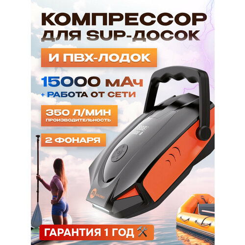 Насос для сапборда электрический AVALONICA предназначен для накачки SUP-досок, ПВХ-лодок, фитболов, автомобильных и велосипедных колес, надувных матрасов и других надувных изделий. Мощность, которую имеет насос для сапборда аккумуляторный от AVALONICA, составляет 120 Вт, что обеспечивает высокую производительность – 350 л/мин. Максимальное давление достигает 3,5 бара, что является оптимальным значением для большинства задач. Встроенный аккумулятор на 15000 мАч позволяет использовать электрический насос для сапборда в автономном режиме в любом месте. Конструкция: Насос для SUP доски электрический AVALONICA выполнен из качественных и практичных материалов, устойчивых к механическим повреждениям. Удобная ручка для переноски с фиксацией положения, которую имеет насос для сапа электрический AVALONICA, служит дополнительной точкой крепления при необходимости. Кнопки управления защищены от попадания влаги и имеют четкий ход, а яркая светодиодная индикация, которую имеет на своём корпусе насос для SUP board, отвечает за отображение всей необходимой информации. Кроме того, насос SUP доски оснащен двумя фонарями с двух сторон на 100 лм, которые обеспечивают яркое освещение в темное время суток или в условиях плохой видимости. Безопасность: Компрессор для сапборда AVALONICA имеет в своей конструкции активную систему охлаждения, которая отвечает за стабильную работу устройства, позволяя дольше накачивать сапборды без перегрева. Двухступенчатый режим распределяет нагрузку в зависимости от выбранного режима накачки, что обеспечивает надежность работы и продлевает срок службы, в течение которого насос для фитбола и лодки сможет работать. Также, чтобы обезопасить сап борд, в компрессоре реализовано автоматическое отключение по достижению заданных значений эксплуатации устройством и предотвращает его перегрев. Особенности работы: Мощный двигатель и поршневая группа, которые имеет насос электрический от AVALONICA, обеспечивают высокую производительность компрессора, что позволяет быстро накачивать различные надувные изделия, например, сап доска или матрас, а ПВХ-лодку можно накачать за 10 минут. Несколько режимов накачки с оптимальными уставками, которые имеет насос электрический для лодки, подойдут под разные нужды. Аккумулятор на 15000 мАч позволяет использовать насос электрический для матраса и каяка в любом месте, что открывает перед вами новые горизонты и настоящий дух свободы. При помощи цифрового манометра, который имеет насос электрический для лодки, можно отслеживать процесс накачки или тонко регулировать значения при необходимости. Электрический насос для матрасов и лодок AVALONICA может работать в обратном режиме, откачивая воздух, что удобно там, где нужно сдувать изделие после использования. Электро насос для лодки пвх в комплекте имеет 8 универсальных переходников-насадок, предохранители, кабель питания от прикуривателя и сумка для хранения. Компрессор аккумуляторный AVALONICA работает от гнезда прикуривателя 12В. Богатая комплектация, мощные технические характеристики и современный дизайн делают компрессор для лодки пвх 12 вольт высокого давления Avalonica идеальным вариантом в качестве подарка и полезного аксессуара вам, вашим близким и друзьямПримерные показатели по производительности 4 сап доски на 1 зарядке аккумулятора до 15 psi, время 1 сапа 11 минут. По