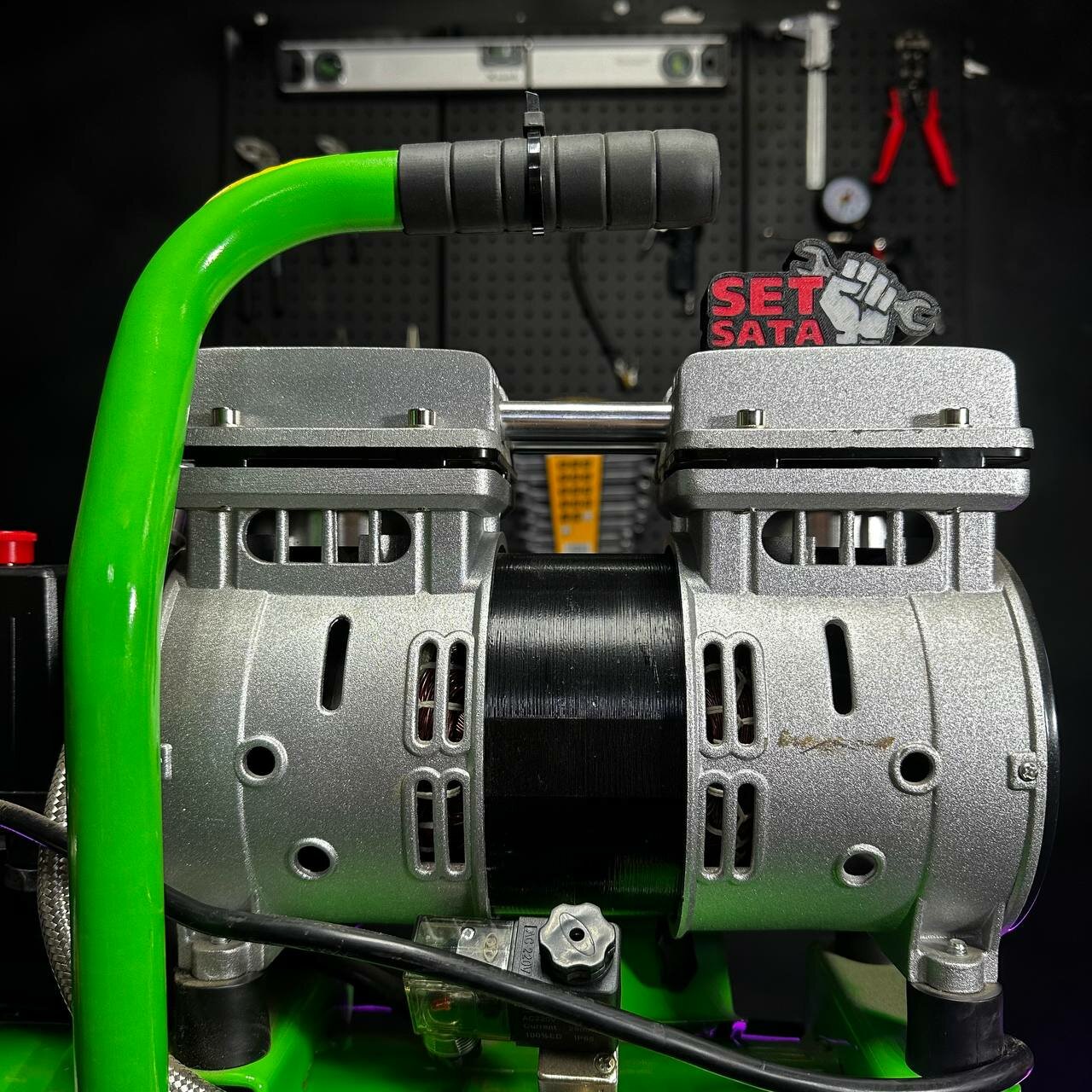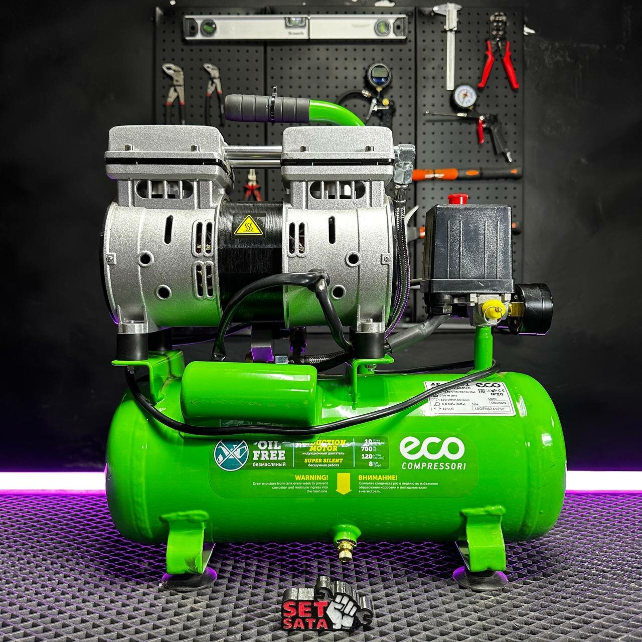 Преимущества: - Компактный и удобный для переноски - Для использования не требуется заливка масла - Низкий уровень шума - 2-цилиндровый - Регулятор давления - Электромагнитный клапан - Манометры с металлическим корпусом -Дополнительная воздушная трубка для уменьшения уровня шума - Воздушный фильтр с бумажным фильтроэлементом --- Технические характеристики: Тип: поршневой Тип смазки: безмасляный Привод: прямой Ресивер: 10 л Потребляемая мощность: 0,7 кВт Производительность: 120 л/мин Параметры сети: 220 В / 50 Гц Максимальное давление: 0 - 8 атм Количествоцилиндров: 2 Количество быстросъёмов: 1 Количество конденсаторов: 1 Передвижной: Да Вес нетто: 14 кг Вес брутто: 17 кг Габариты упаковки: 49*21*49 см Гарантийный срок: 12 месяцев ---Комплектация: Компрессор Фильтр воздушный (1 шт) Воздушная трубка (1шт) ---