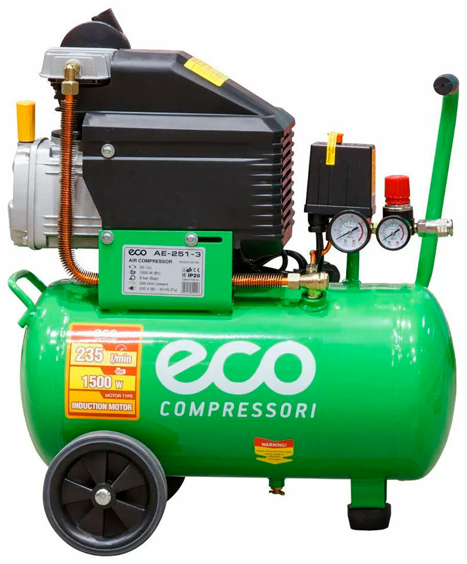 Компрессор Eco AE-251-3, 235 л/мин, 8 атм, коаксиальный масляный ресивер, 24 л, 220 В, 1.50 кВт: сравнение цен, характеристики, фото, актуальное наличие и цены.