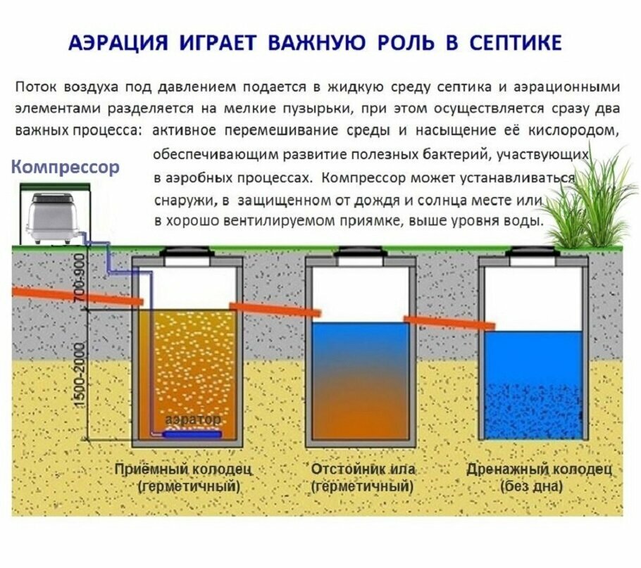 Компрессор используют для аэрации септика, пруда, аквариума, в очистных сооружениях биологической очистки сточных вод, для создания пузырьковой панели.