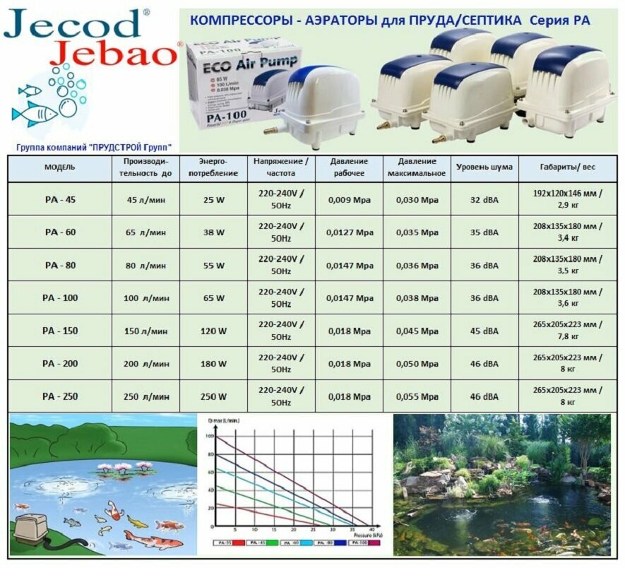 Мембранный компрессор PA-80 JECOD отлично подходит для любых станций очистки воды – септиков моделей: