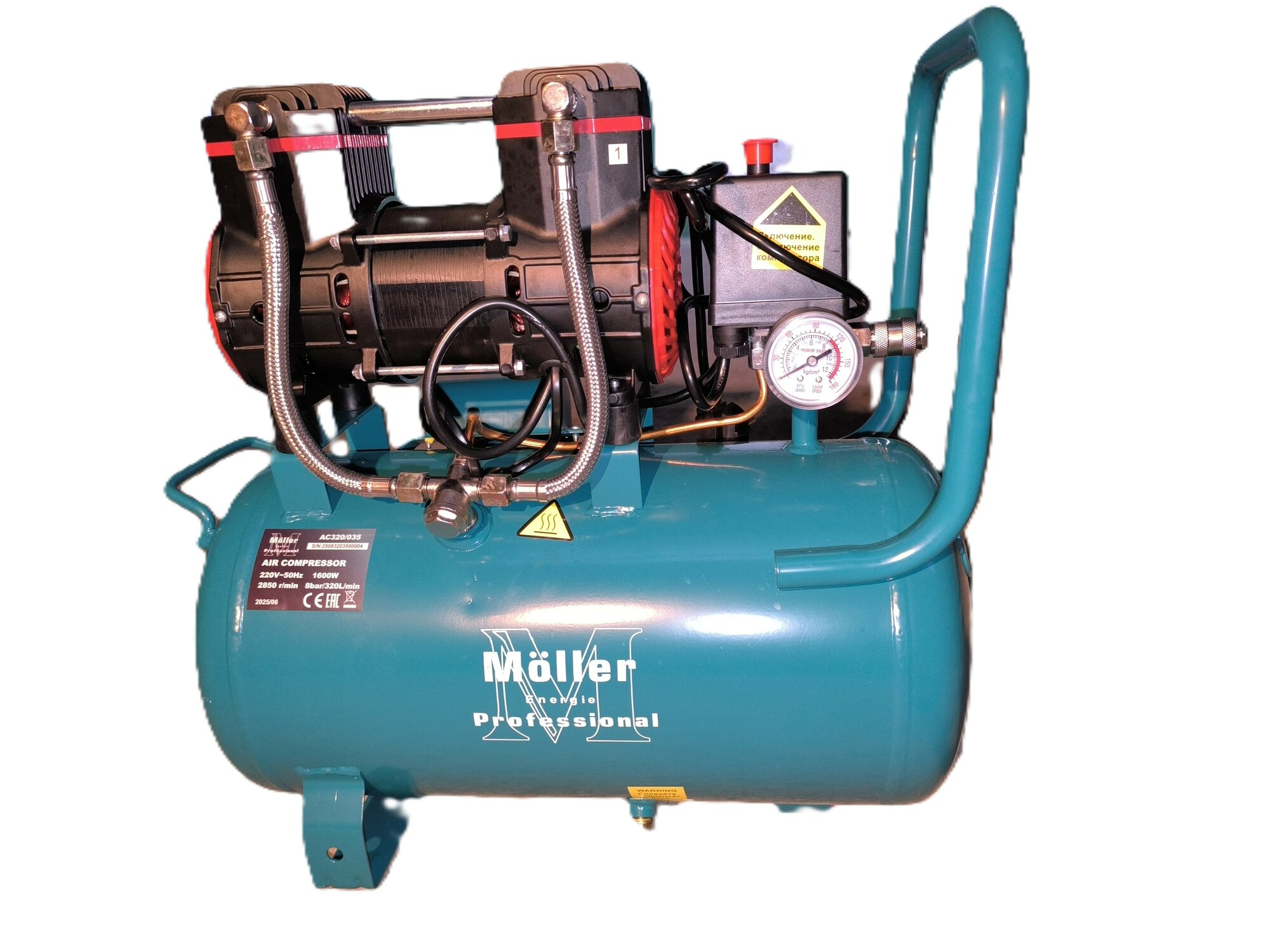 для аэрографа, защита от перегрева, манометр, предохранительный клапан, регулировка давления, ручка для переноски