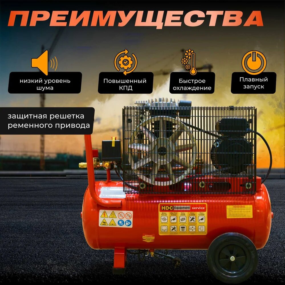 Компрессор HDC HD-A051 воздушный, двухцилиндровый, рядный, масляный. Вертикальное расположение цилиндров, существенно снижает износ уплотнений поршня и гильзы цилиндра и способствует более равномерной смазке цилиндров. Элементы поршневой группы изготовлены из износостойких материалов, обеспечивающих герметичность камер сжатия на протяжении всего срока службы компрессора: гильзы цилиндров и поршневые кольца - из легированного чугуна; пластины клапанов - из нержавеющей пружинной стали; головки цилиндров - из термообработанного алюминиевого сплава. Лопасти маховика создают воздушный поток для охлаждения масляного картера, гильз и головки цилиндров. Ребра охлаждения на головке и гильзе цилиндров увеличены, для более эффективного отвода тепла от поршневой группы. Электродвигатель защищен от тепловых перегрузок и оборудован системой автоматического повторного пуска. Компрессор поставляется заправленный маслом. Внимание! Режим работы - повторно-кратковременный. Продолжительность одного цикла от 6 до 10 минут, с последующим перерывом до 10 минут. Допускается непрерывная работа электродвигателя компрессора не более 15 минут, но не чаще одного раза в течение двух часов.