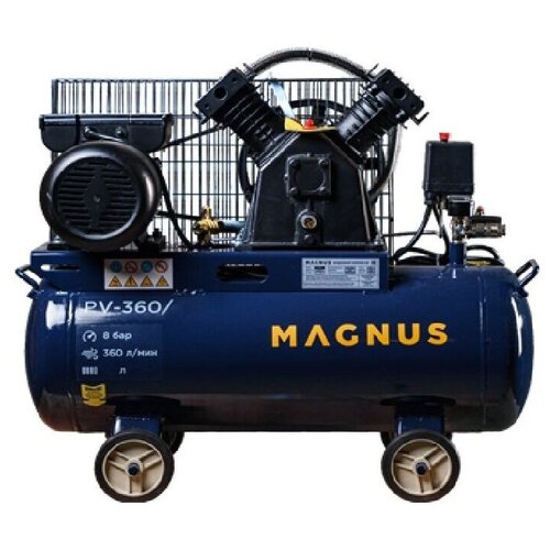 Компрессор воздушный Magnus КV-360/100 (8атм,2,3кВт, 220В, Ф65), двухпоршневой V-образный, ременной привод, рабочее давление 8бар, двигатель асинхронный 2,3кВт, 220В.