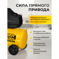 Компрессор масляный Partner for Garden 330/50 - это надежное и мощное устройство для обеспечения сжатым воздухом различных инструментов и оборудования. Производитель Partner for Garden зарекомендовал себя на рынке как надежный и качественный бренд, предлагающий широкий ассортимент продукции для сада и огорода. Компрессор оснащен поршневым типом двигателя, что обеспечивает его высокую производительность и надежность. Мощность двигателя составляет 2000 Вт, что позволяет быстро и эффективно создавать необходимое давление воздуха. Устройство работает от сети 220 В, что делает его удобным для использования в домашних условиях. Объем ресивера составляет 50 литров, что позволяет хранить достаточное количество воздуха для непрерывной работы инструментов. Компрессор имеет два выходных отверстия для подключения инструментов, что позволяет одновременно использовать несколько устройств. Выбирая компрессор масляный Partner for Garden 330/50, вы получаете надежное и производительное устройство, которое станет незаменимым помощником в вашем доме или на даче.